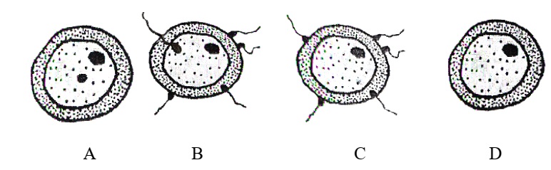 Given below are diagrams showing the different stages in the process of fertilisation of an egg