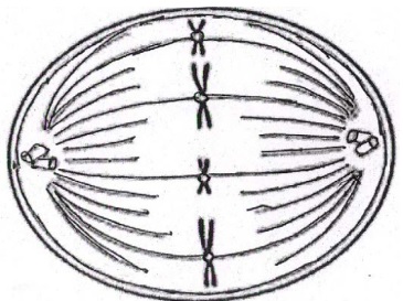 - Draw a neat, labelled diagram of the stage mentioned in (iv) above keeping the chromosome number constant.