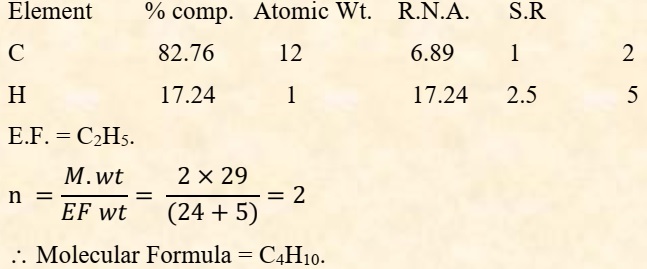 Mole Concept (10)A gaseous hydrocarbon contains 82.76% of carbon. Given that its vapour density is 29, find its molecular formula. [C=12, H=1]