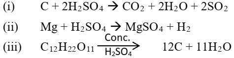 - The oxidizing action of concentrated Sulphuric acid on Carbon.
