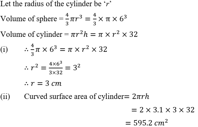 Mensuration (10)A solid metallic sphere of radius 6 cm is melted and made into a solid cylinder of height 32 cm. Find the: