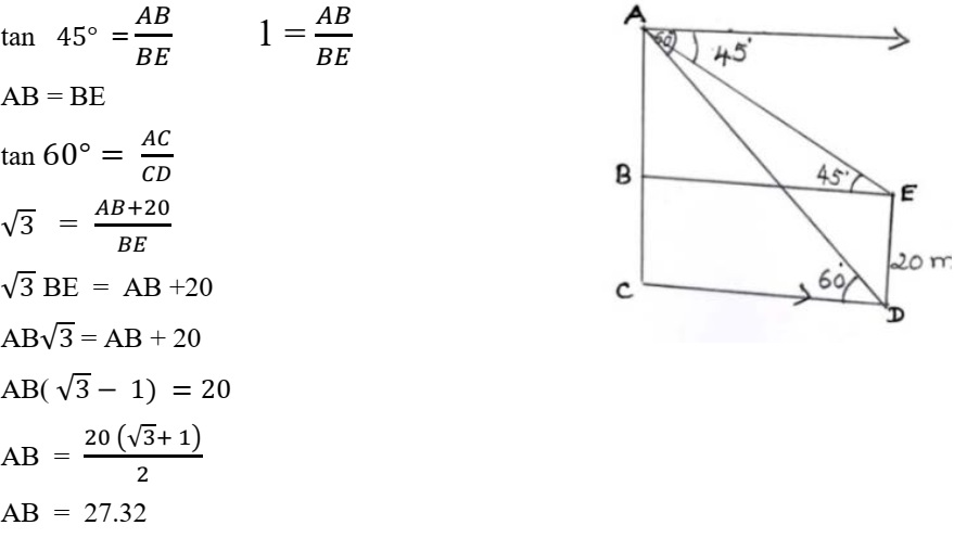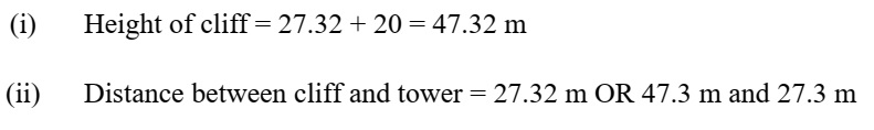 Trigonometry (10)From the top of a cliff, the angle of depression of the top and bottom of a tower are observed to be 45 and 60° respectively. If the height of the tower is 20 m. Find:
