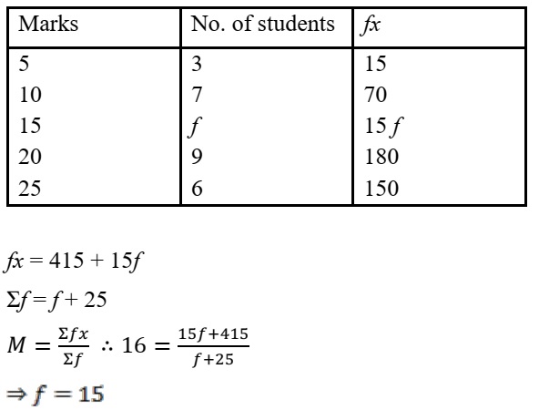 The mean of the following data is 16. Calculate the value of f
