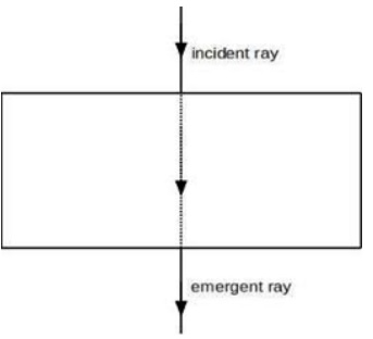 Light (10)A ray of light falls normally on a rectangular glass slab. Draw a ray diagram showing the path of the ray till it emerges out of the slab.