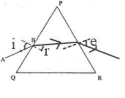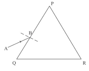 Light (10)Complete the path of the monochromatic light ray AB incident on the surface PQ of the equilateral glass prism PQR till it emerges out of the prism due to refraction.