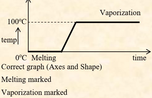 Heat (10)Some ice is heated at a constant rate, and its temperature is recorded after every few seconds, till steam is formed at 100oC. Draw a temperature time graph to represent the change. Label the two phase changes in your graph.