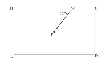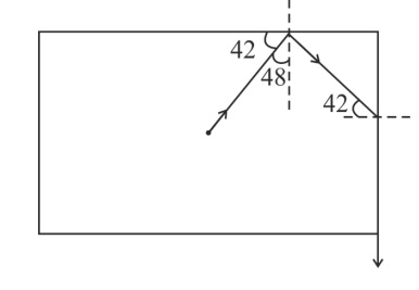 Light (10)The diagram below shows a light source P embedded in a rectangular glass block ABCD of critical angle 42°. Complete the path of the ray PQ till it emerges out of the block. [Write necessary angles.]