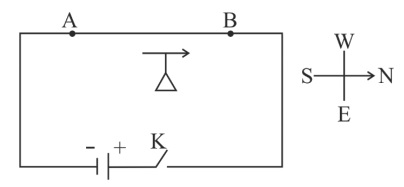 Electricity and Magnetism (10)The diagram below shows a magnetic needle kept just below the conductor AB which is kept in North South direction.